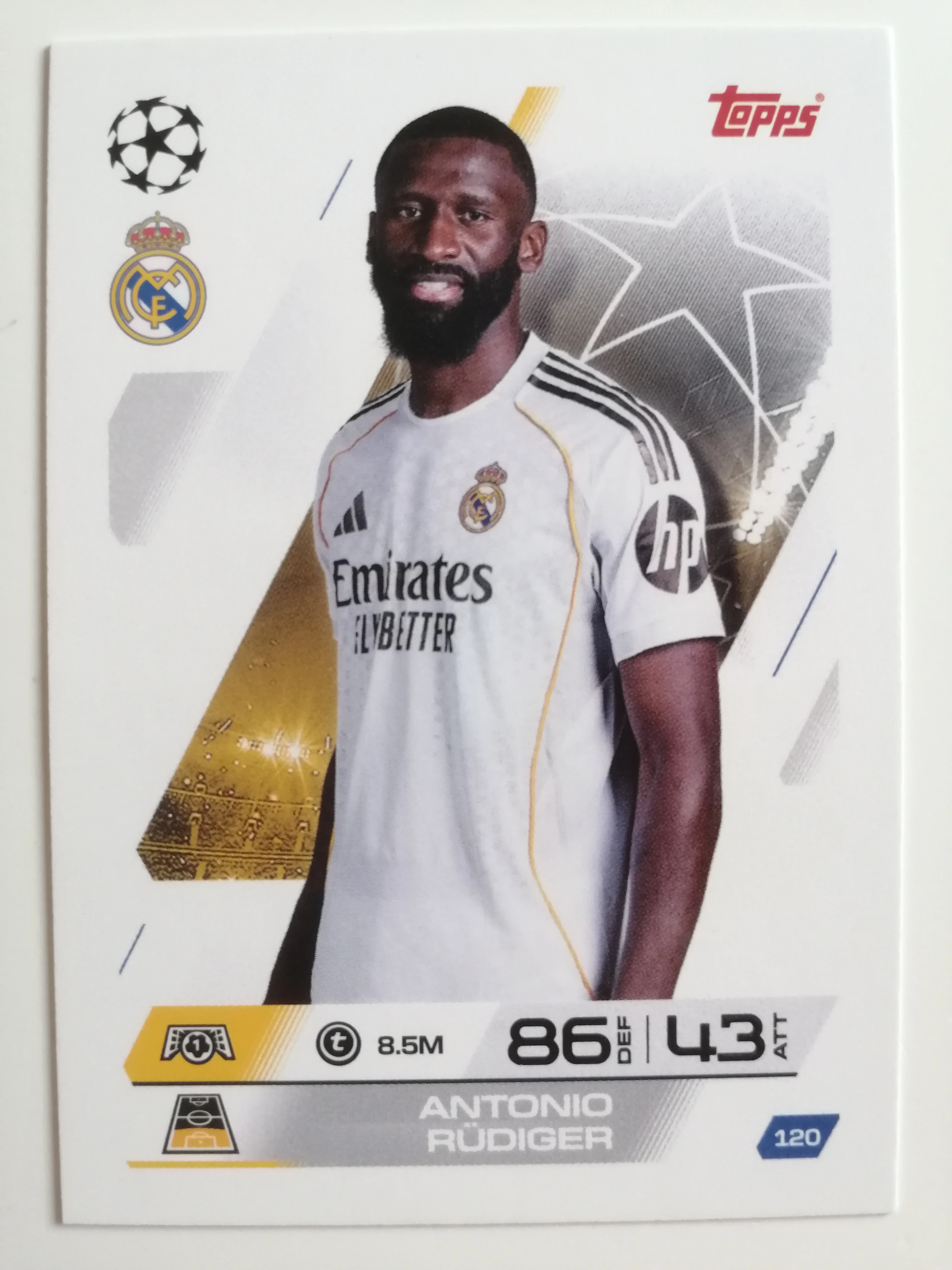 120 Antonio Rüdiger Base focis kártya (Real Madrid CF) MATCH ATTAX BL 2025-26