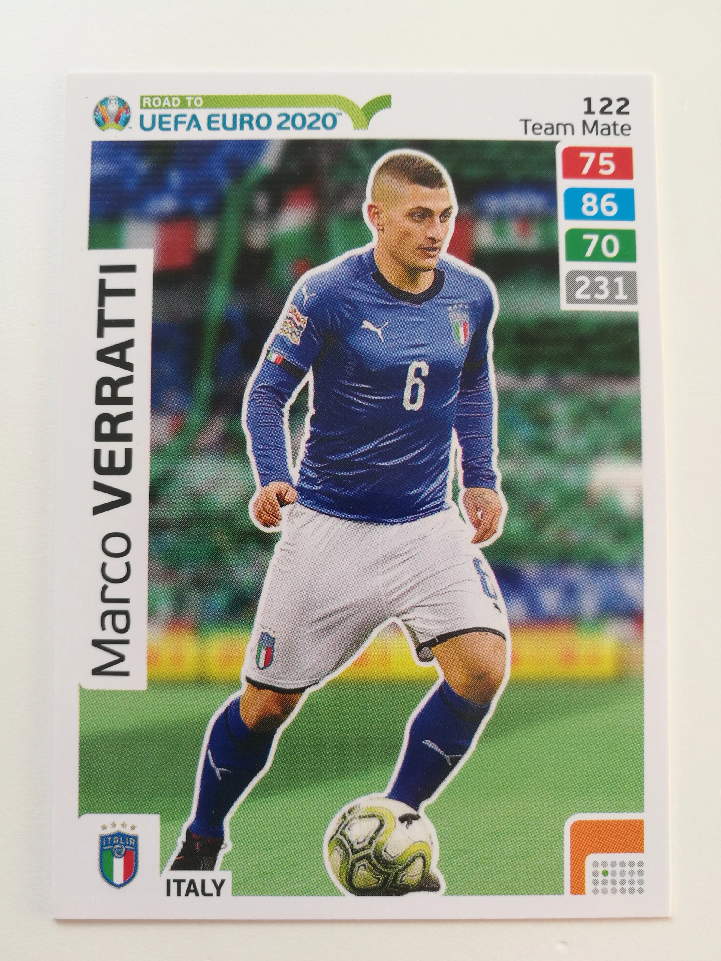 122 Marco Verratti Team Mate (Italy)" RTE2020 focis kártya