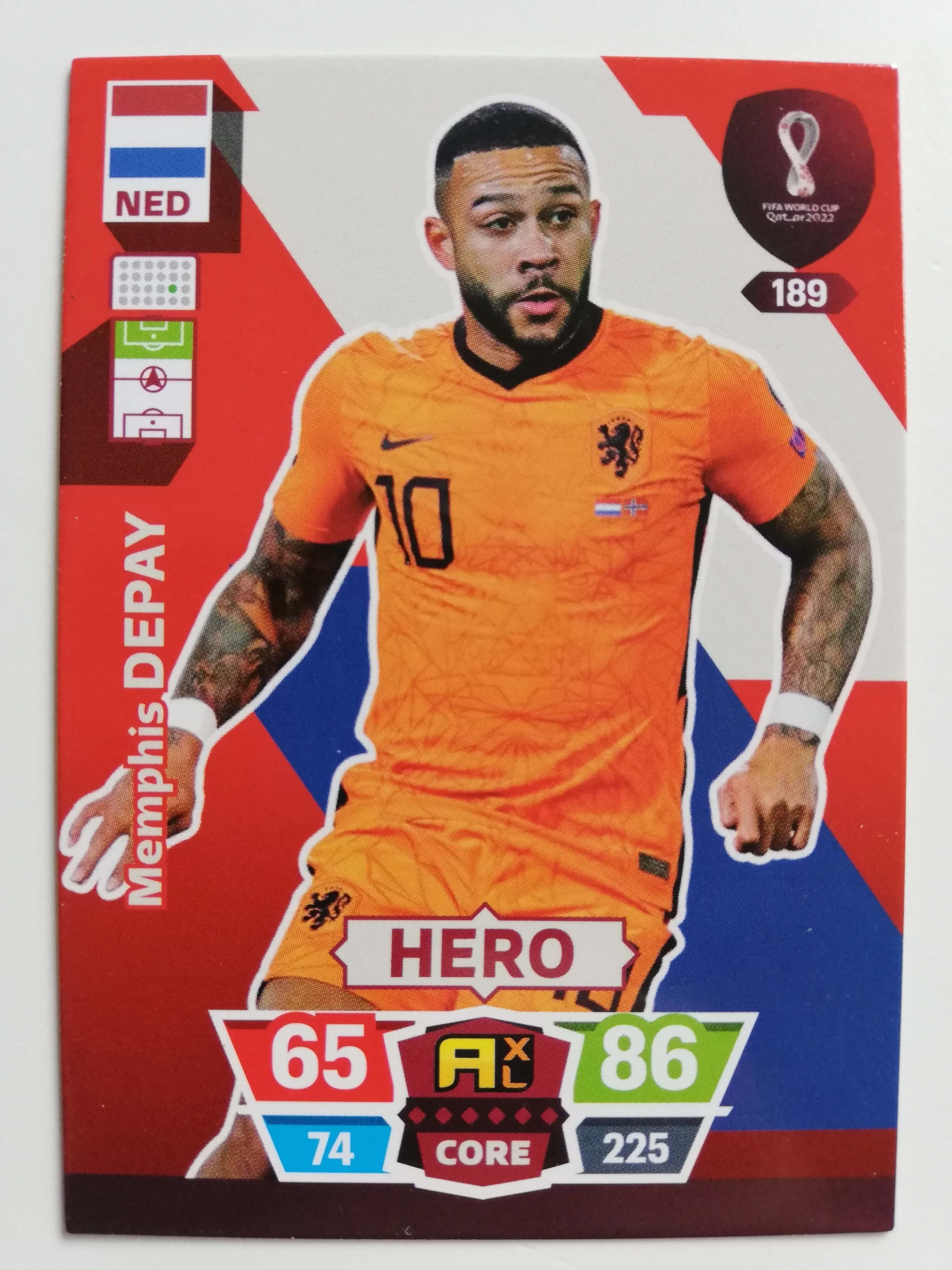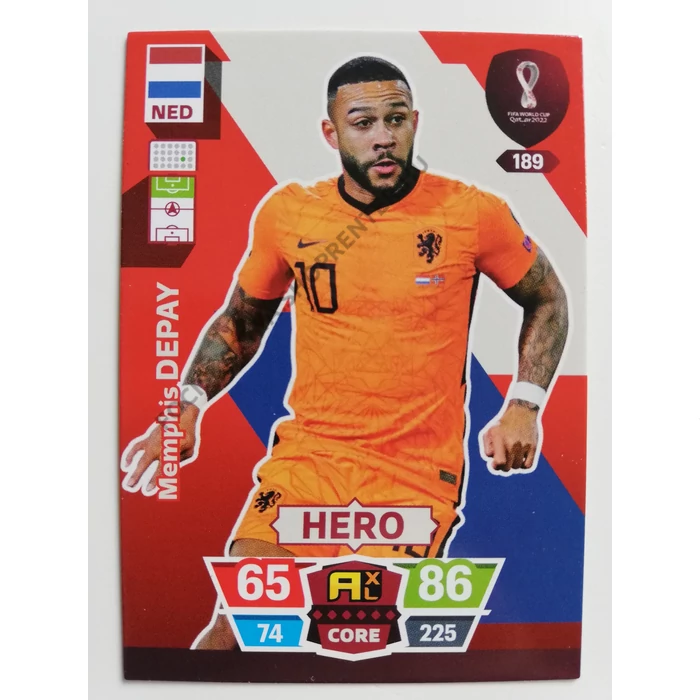 189 Memphis Depay CORE / Hero focis kártya (Netherlands) Qatar VB 2022
