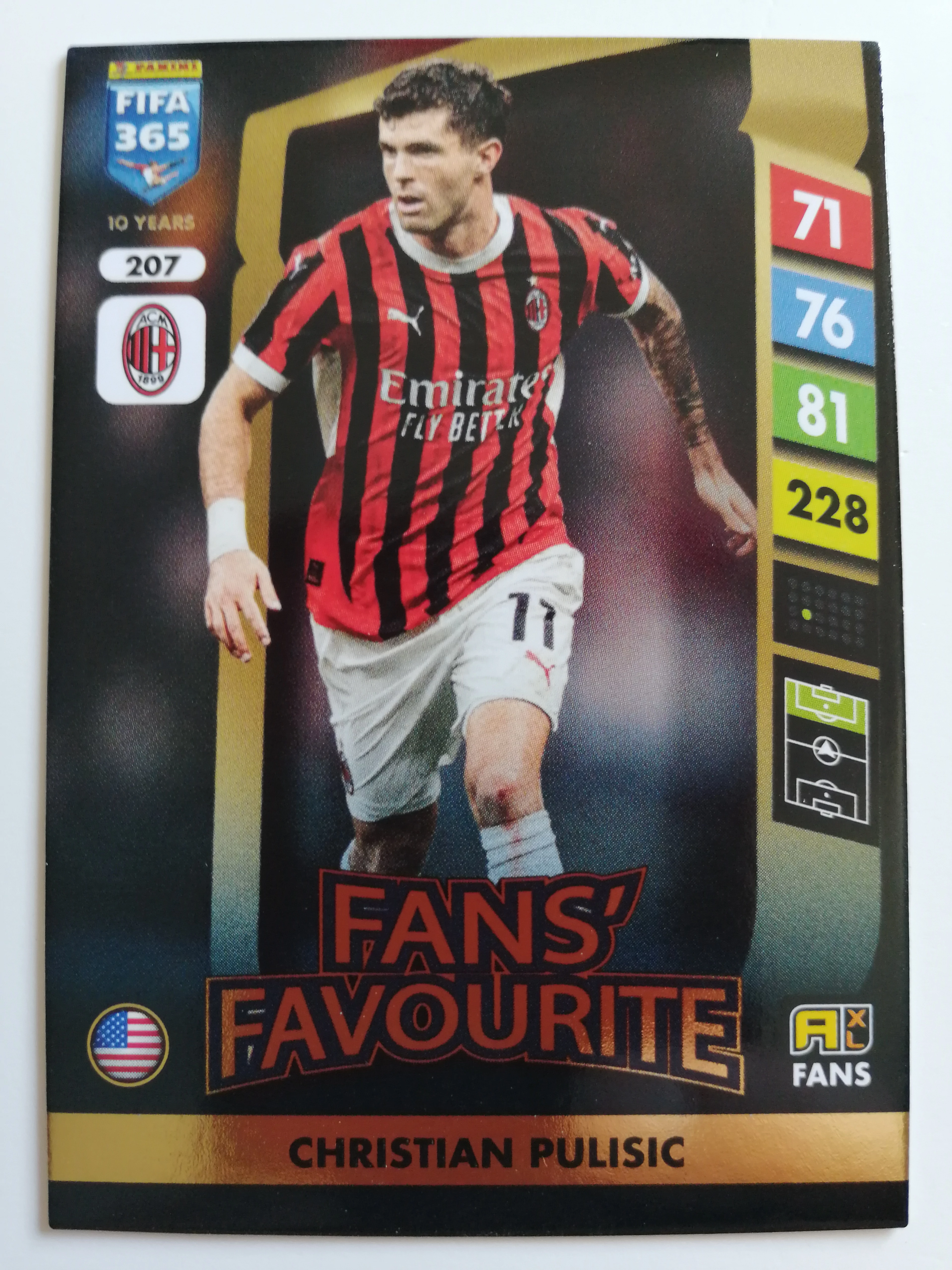 207 Christian Pulisic FANS / Fans’ Favourite focis kártya (AC Milan) FIFA365 2024-25