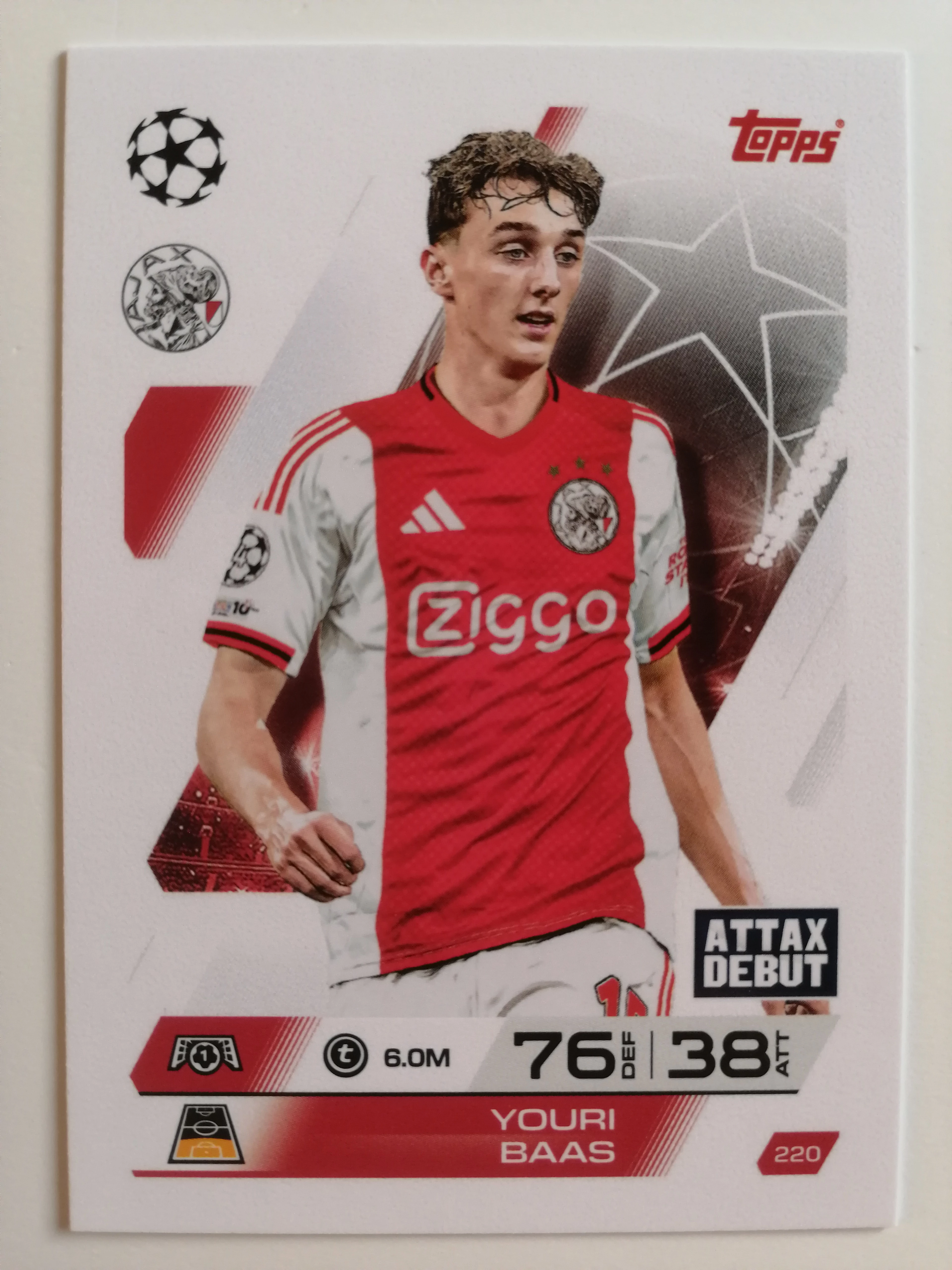 220 Youri Baas Base focis kártya (AFC Ajax) MATCH ATTAX BL 2025-26