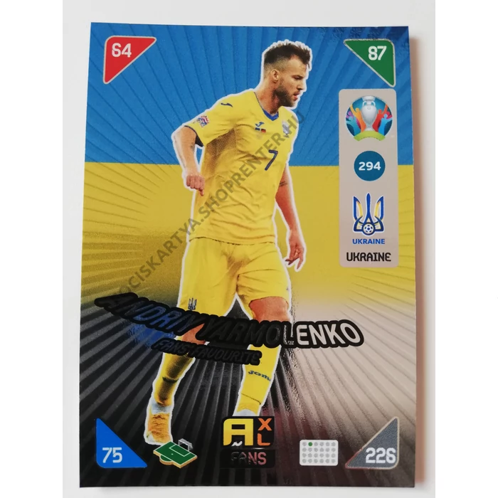 294 Andriy Yarmolenko FANS - Fans' Favourites focis kártya (Ukraine) EURO2020 KICKOFF