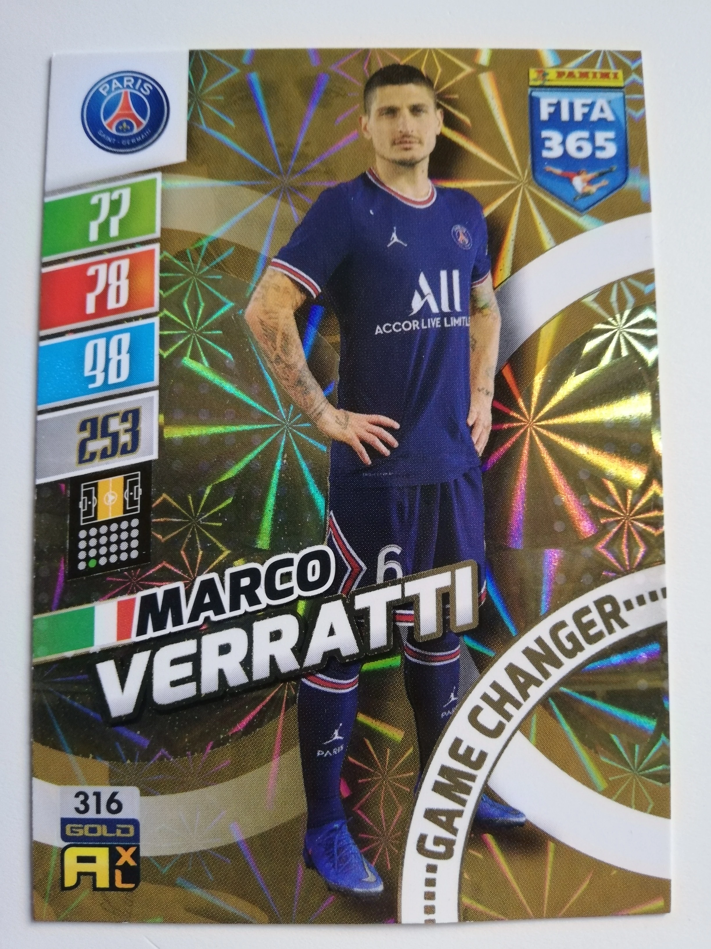316 Marco Verratti GOLD / Game Changer focis kártya (Paris Saint-Germain) FIFA365 2022