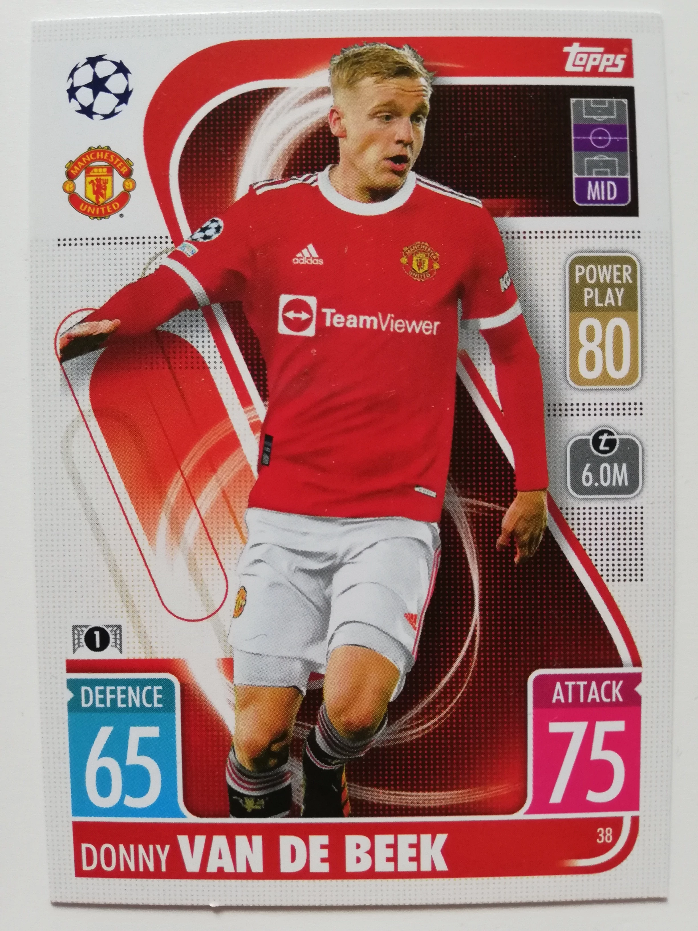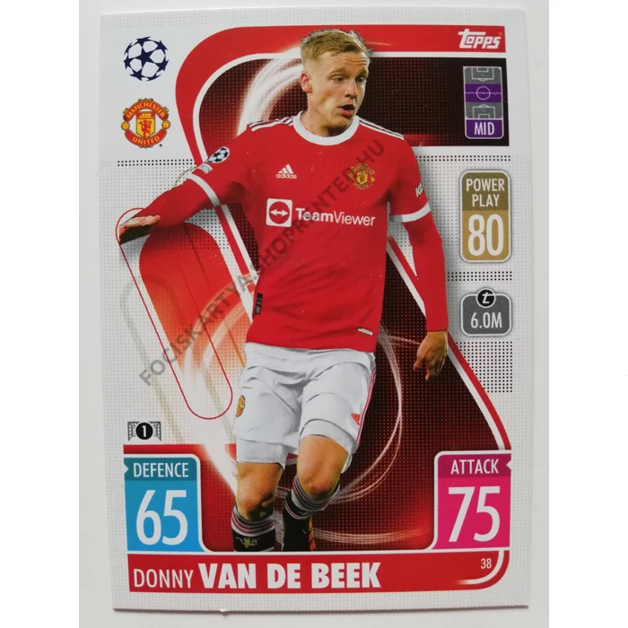 38 Donny van de Beek Base card focis kártya (Manchester United) MATCH ATTAX BL 2021-22