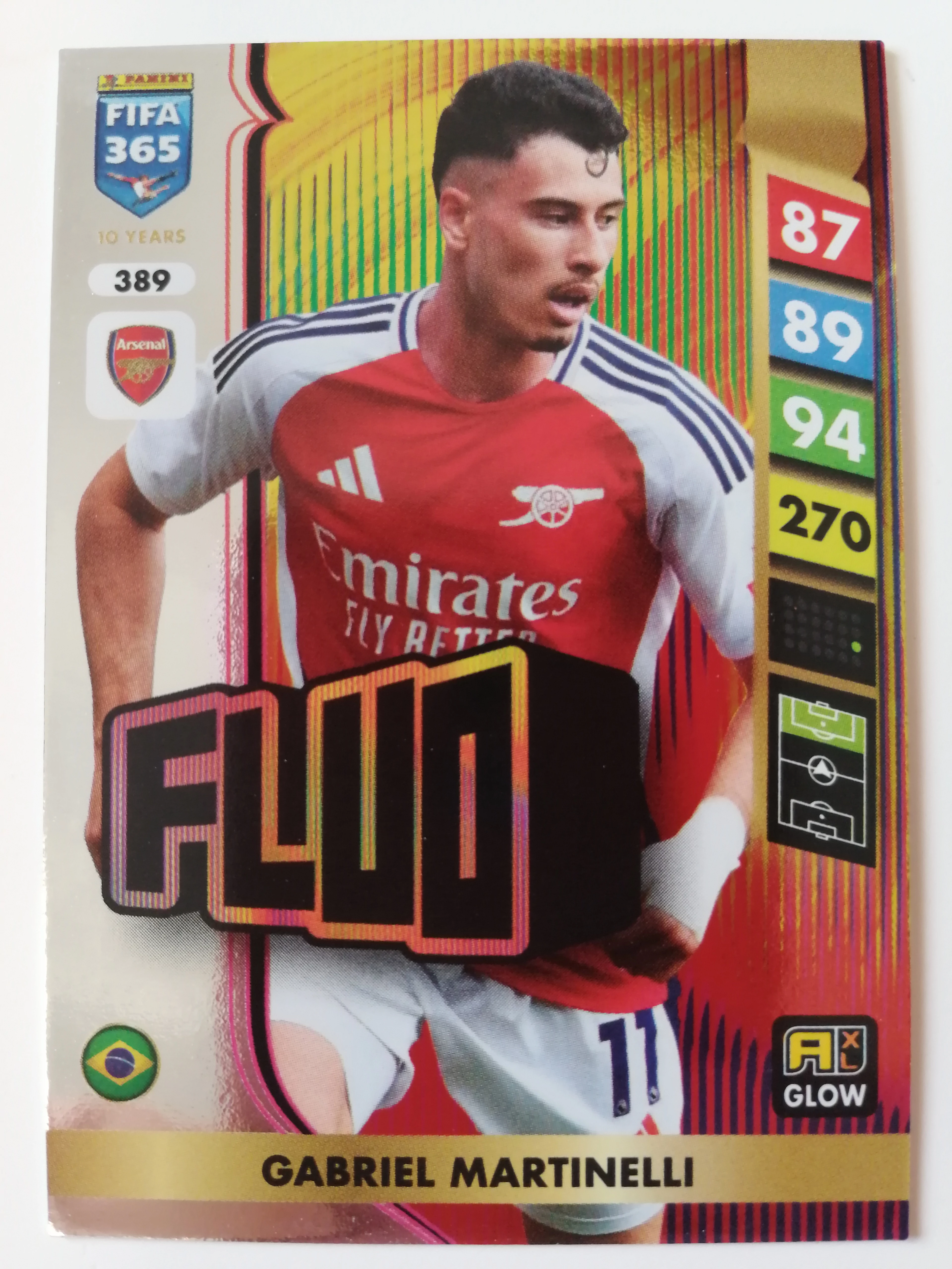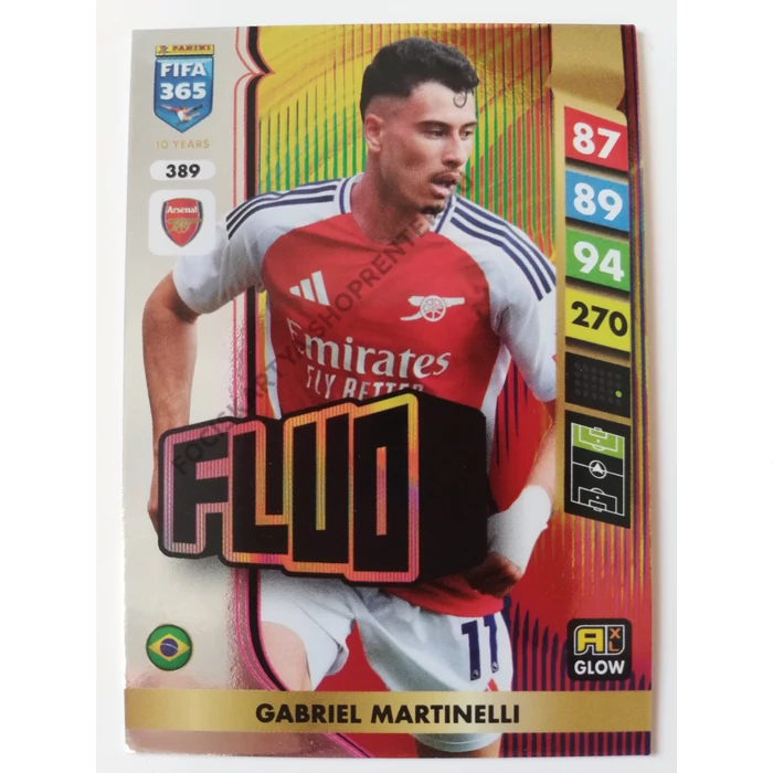 389 Gabriel Martinelli GLOW / Fluo focis kártya (Arsenal) FIFA365 2024-25