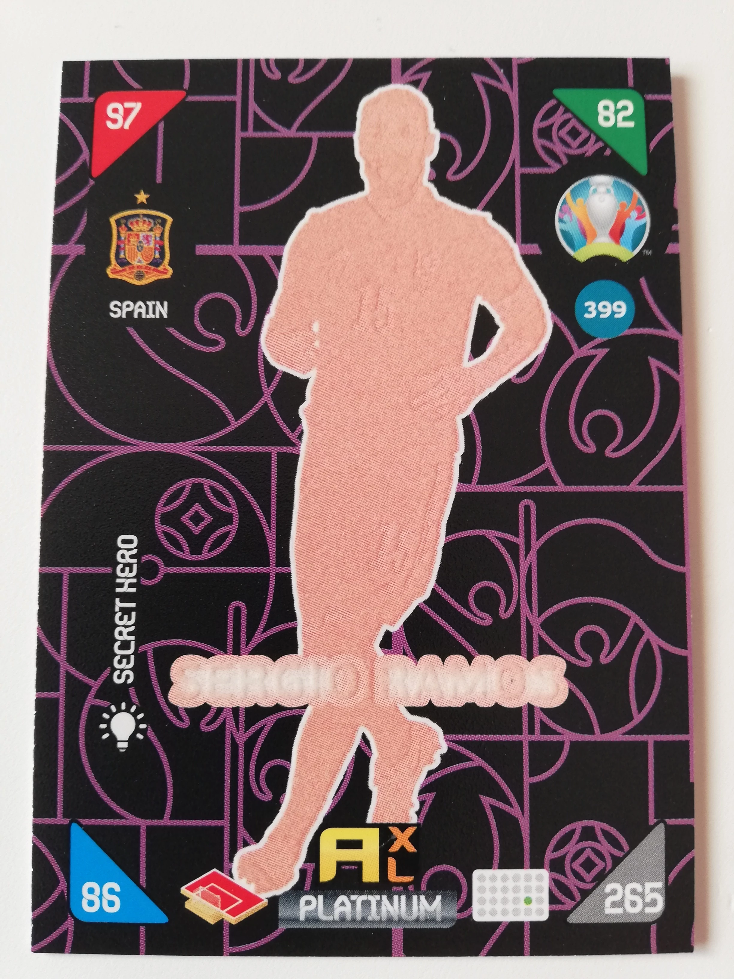 399 Sergio Ramos PLATINUM - Secret Heroes focis kártya (Spain) EURO2020 KICKOFF