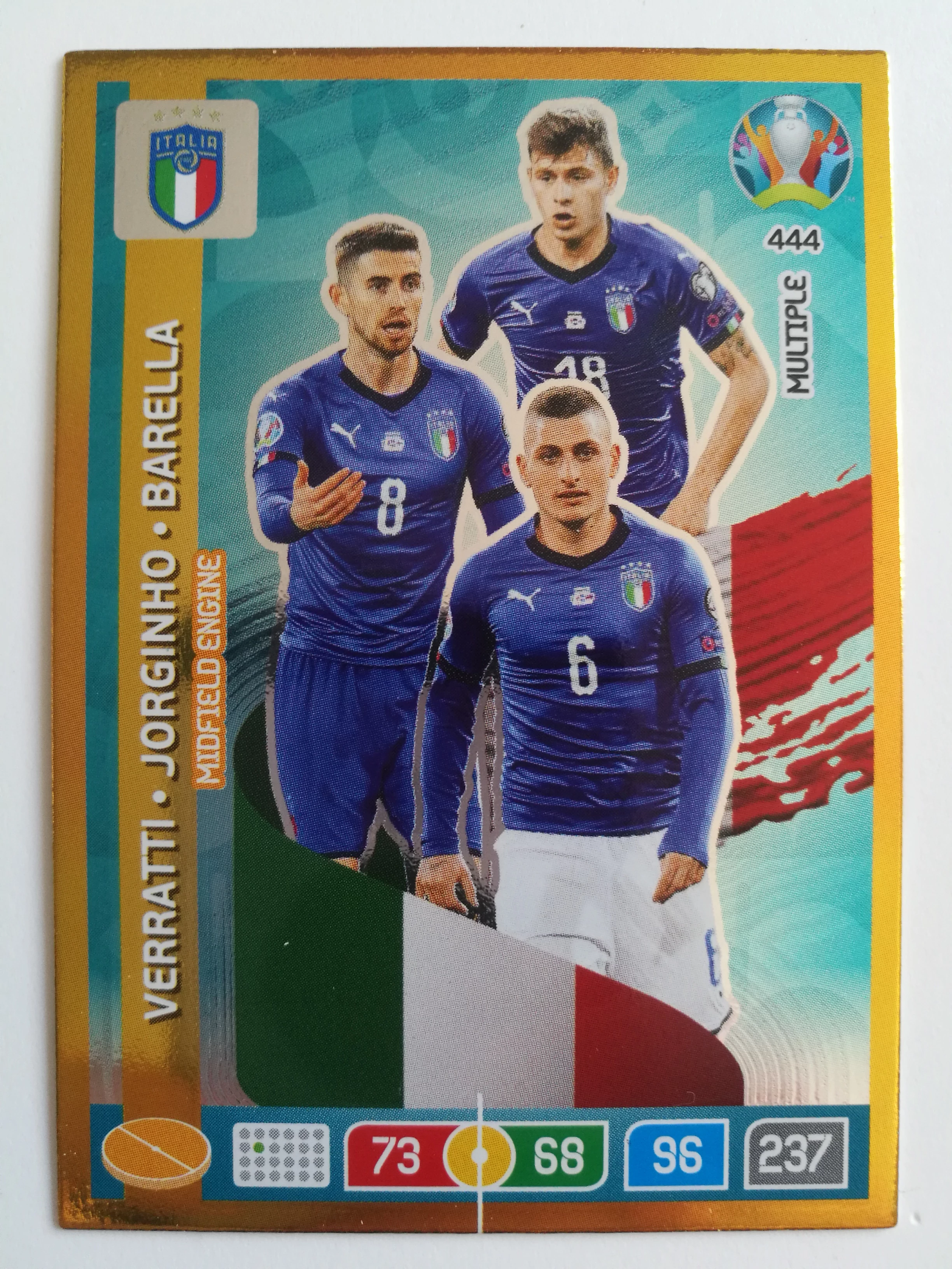 444 Marco Verratti / Jorginho / Nicolo Barella MULTIPLE - Midfield Engine focis kártya (Italy) EURO 2020