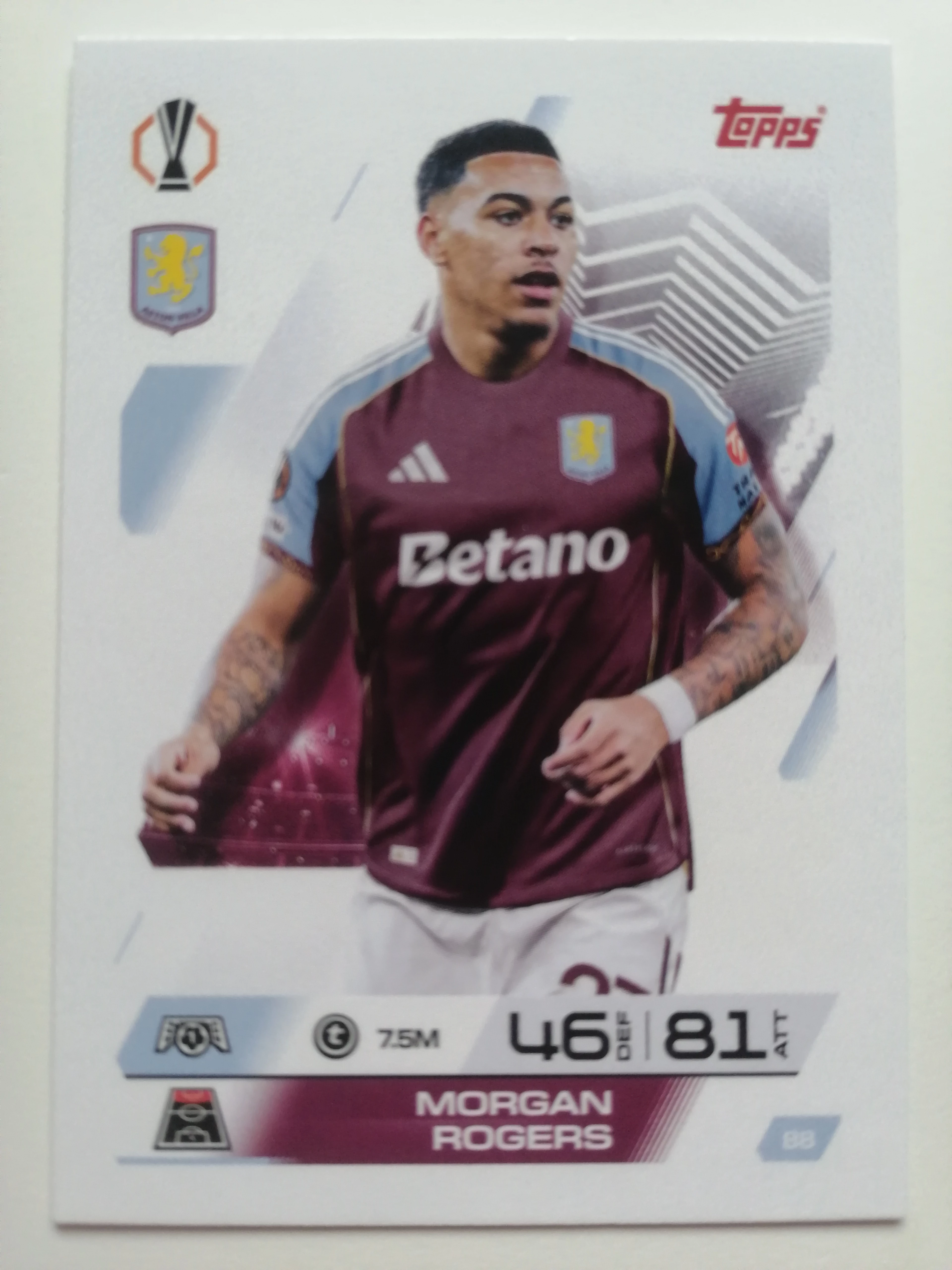 88 Morgan Rogers Base focis kártya (Aston Villa) MATCH ATTAX BL 2025-26