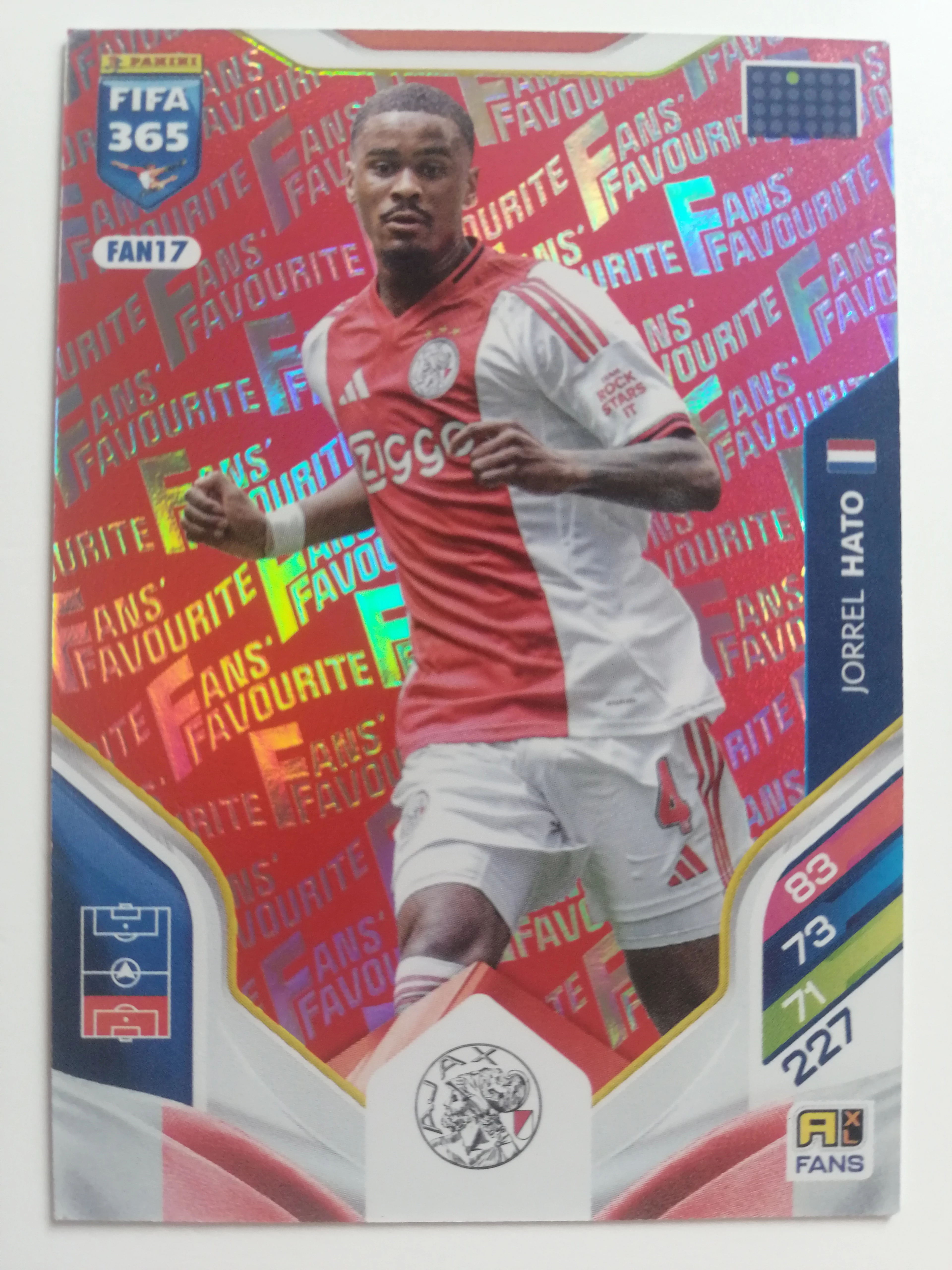 FANR17 Jorrel Hato PIROS FANS / Fans' Favourite focis kártya (AFC Ajax) FIFA365 2026