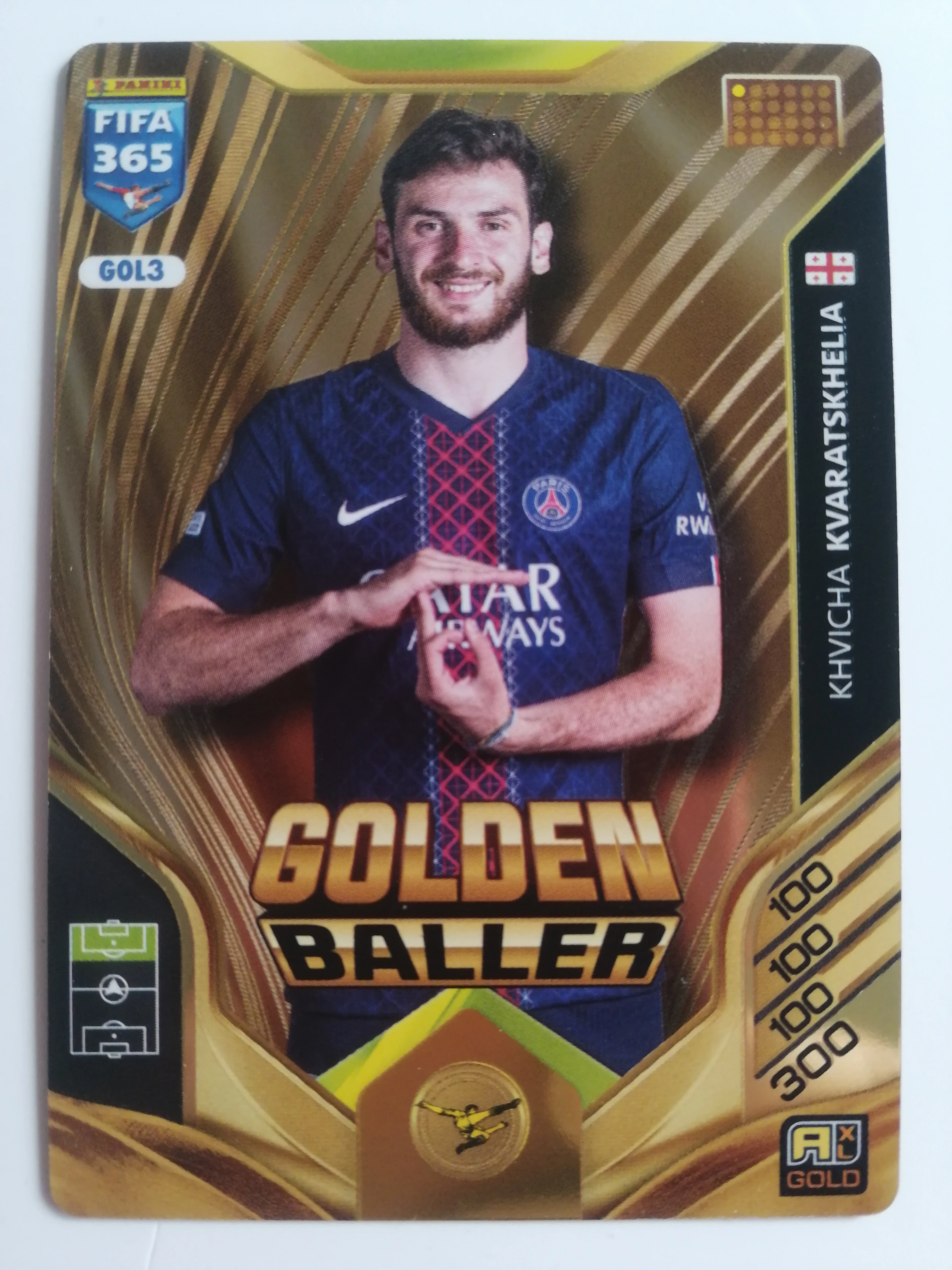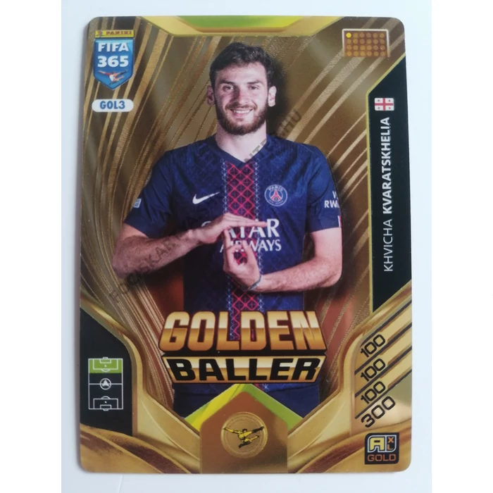 GOL3 Khvicha Kvaratskhelia RARE / Golden Baller focis kártya (Paris Saint-Germain) FIFA365 2026