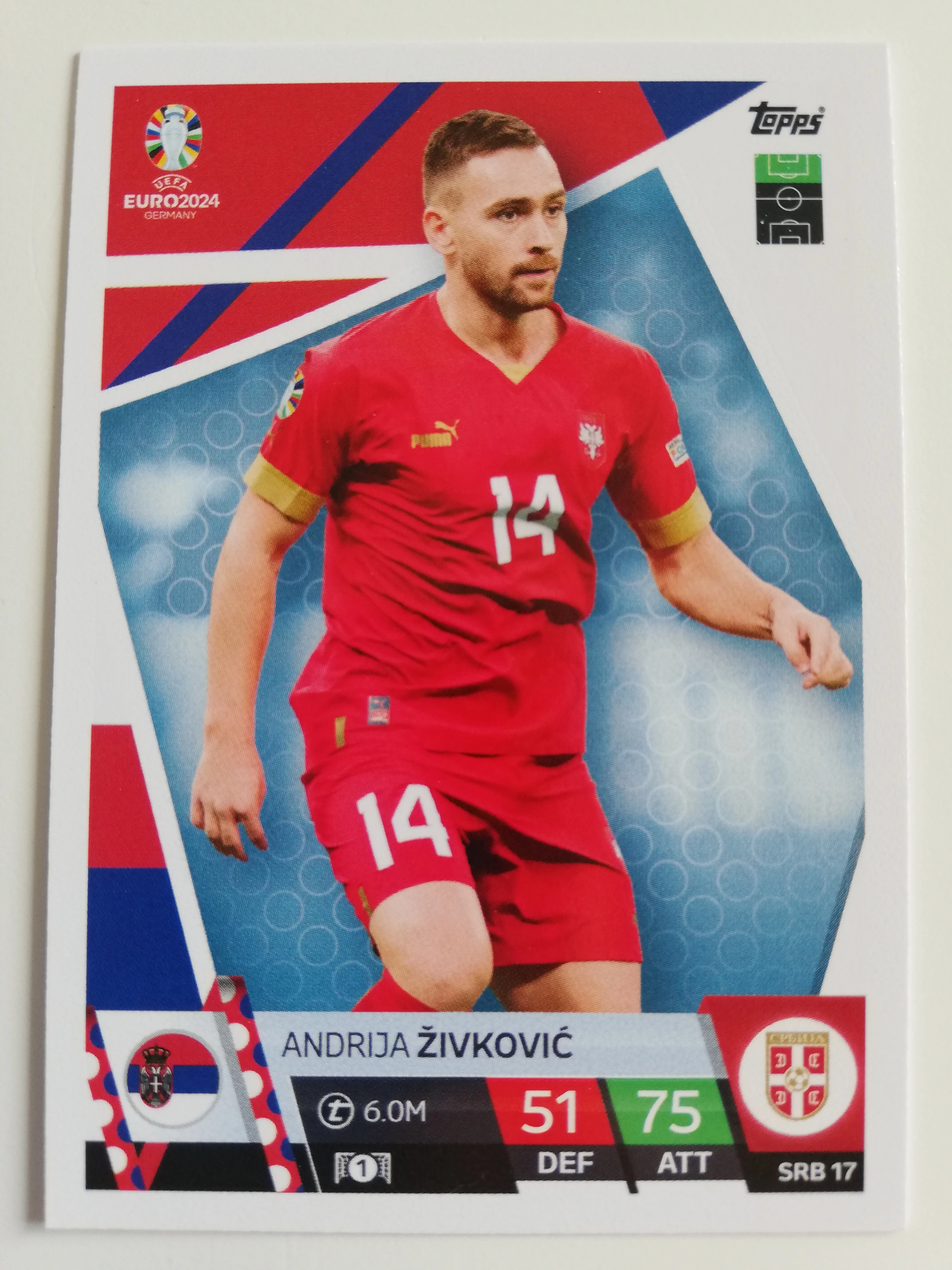SRB17 Andrija Živković Base card focis kártya (Serbia) TOPPS Match Attax Euro 2024